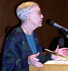 Congresswoman Johnson said that the new rescription drug bill is "kind of a farce." Several times, she referred to the Bush privatization proposal as a "hoax." She drew big applause when she commented, "I think that people deserve a living wage!"